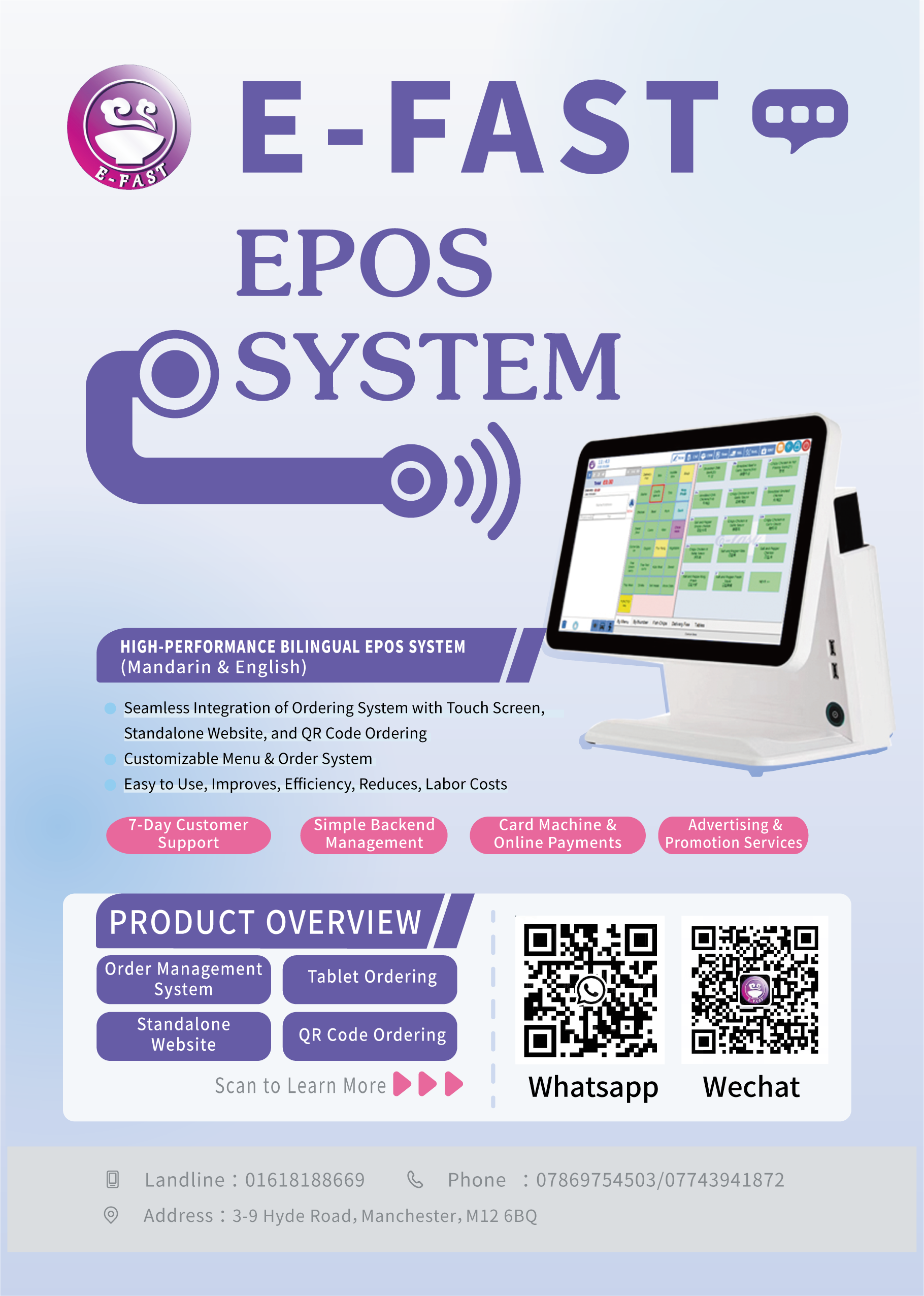 曼城唐人街:3-9 Hyde Road,Manchester M12 6BQ 热线电话:07743941872 / 01612361558